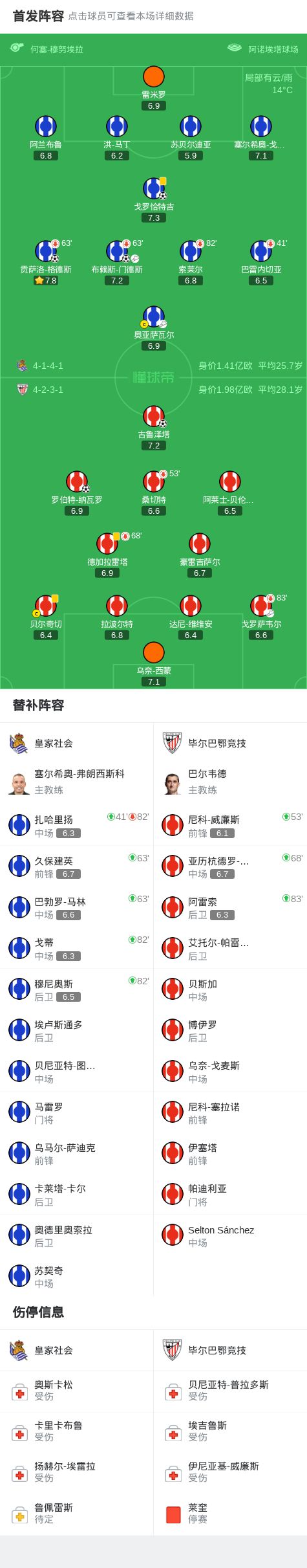 皇家社会vs毕尔巴鄂竞技:奥亚萨瓦尔、贡萨洛-格德斯首发,拉波尔特、乌奈-西蒙出战